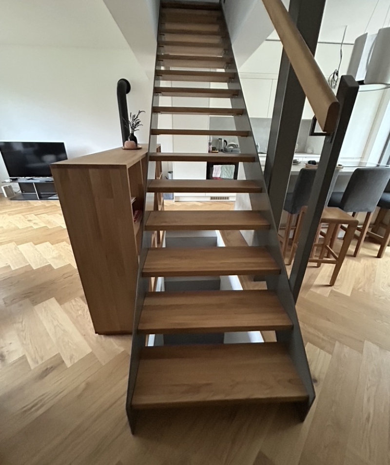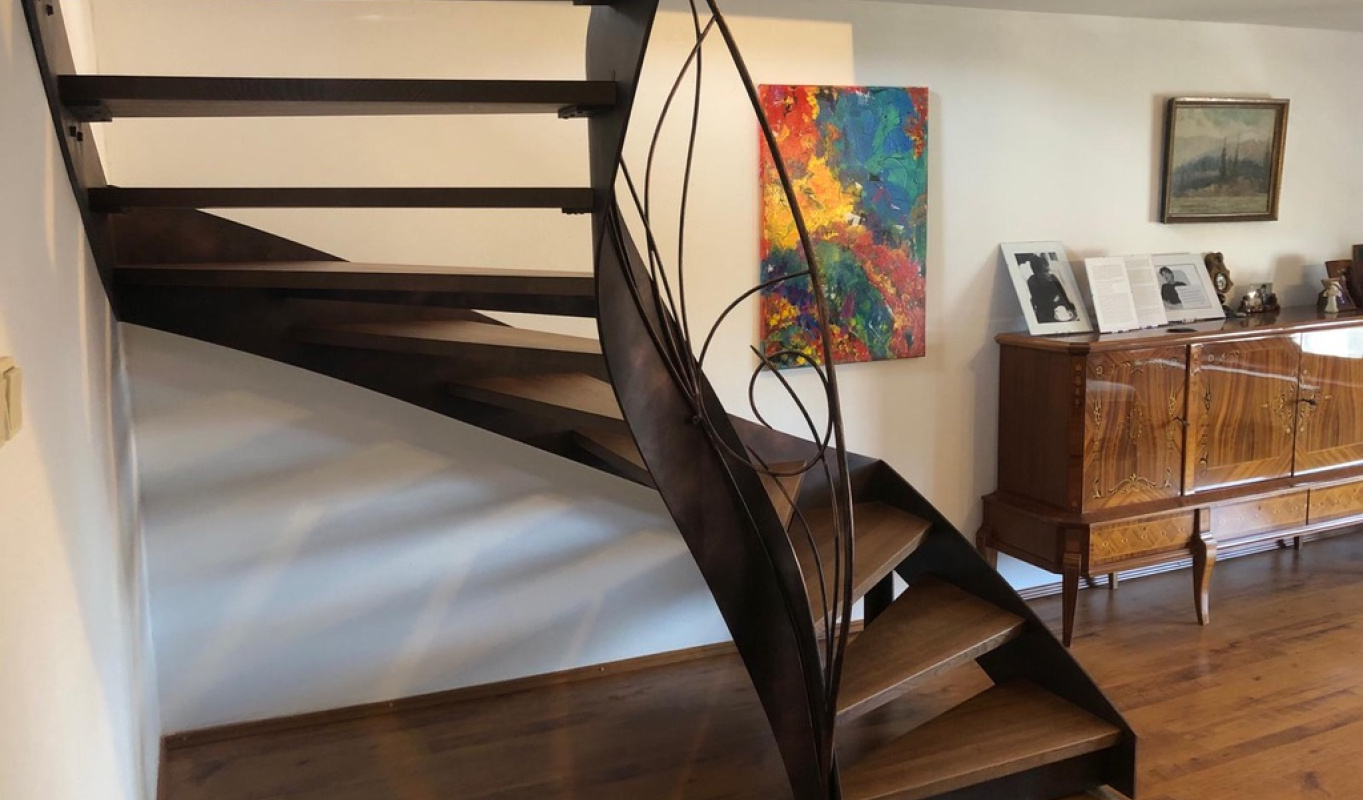 Wooden staircases from Drevos are more than just a practical connection between floors – they are a dominant architectural element of the interior. We design and manufacture various types of staircases – self-supporting, on concrete, spiral, and straight – with the option to combine wood with metal, glass, or stone.